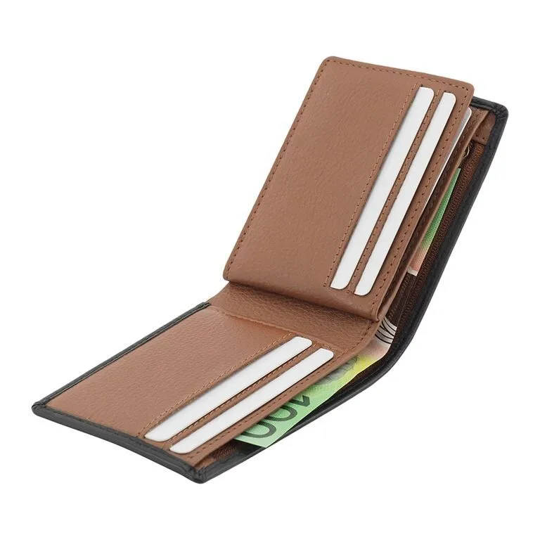 Designed with a compact and slim profile, this wallet sits comfortably in your pocket without bulk. It features six precision-cut card slots, a large clear ID section, and a full-length note compartment for effortless organisation. A discreet zippered section provides secure storage for valuable items, blending practicality with understated elegance.