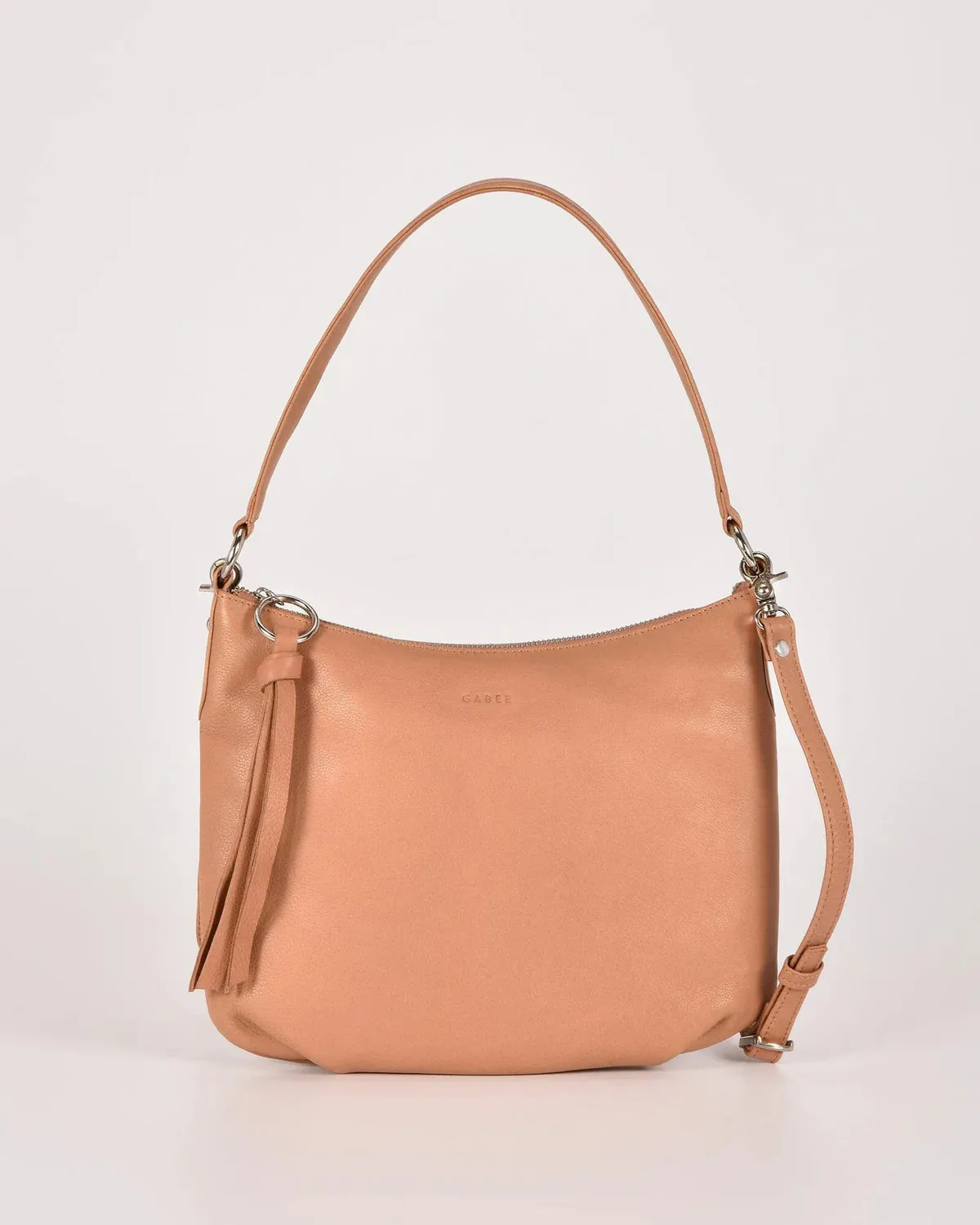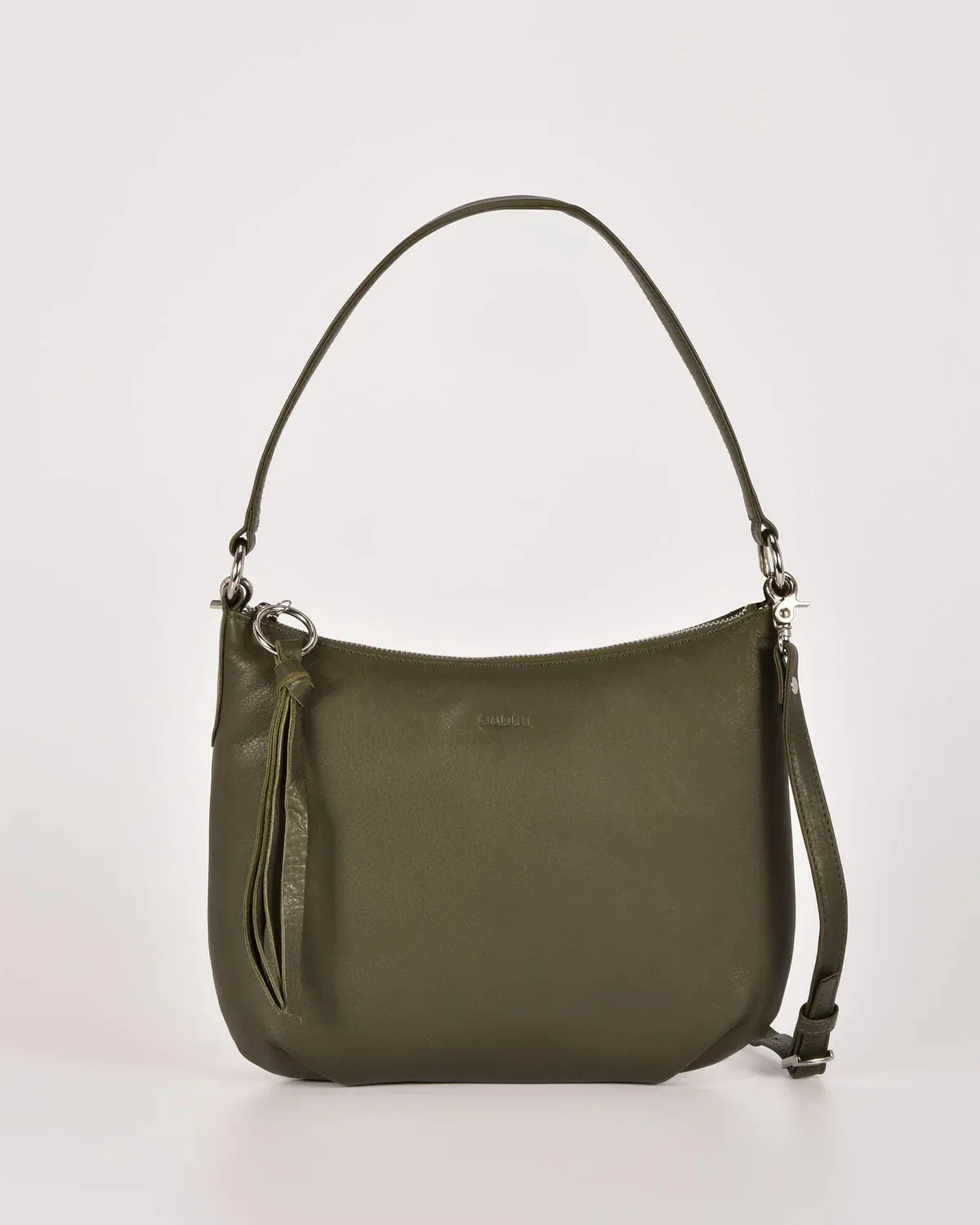 The Belle rounded handbag is your essential companion for everyday practicality. Enhanced with a sleek tassel, it boasts a fully lined interior with numerous compartments to organize your essentials efficiently. Its shoulder strap is expertly designed to stay securely in place, ensuring comfort and ease of wear. Plus, you can effortlessly switch to a hands-free style by attaching the adjustable shoulder strap.