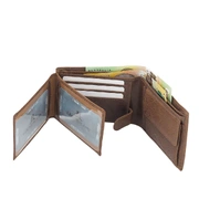 Do not travel without protection! Our newest release Genuine Rugged Leather wallets offer modern functional designs with the added security of RFID Protection. Crafted using the highest quality genuine cowhide leather. Radio Frequency Identification Protected Wallet:  RFID protects you from payment & identity fraud from unwanted scanning of your credit cards. This RFID wallet features an internal metallic layer between the leather & the lining, to block out radio waves and securely shield your information from unauthorized access.