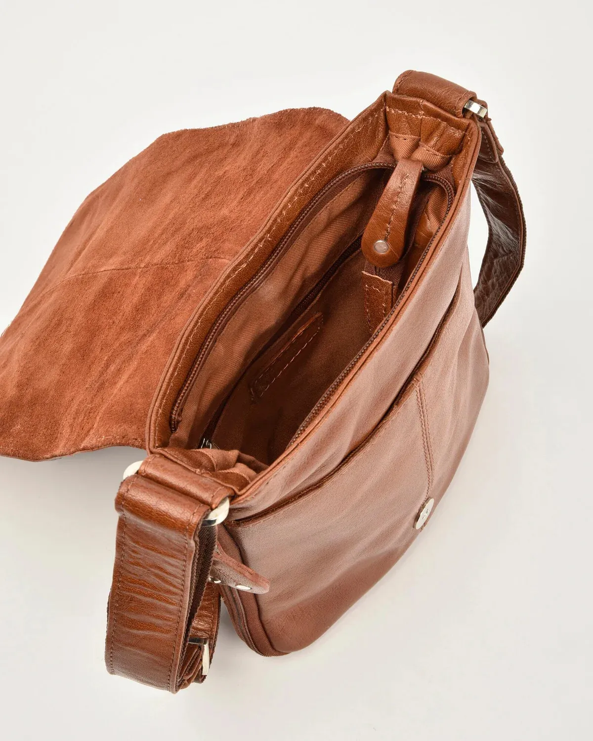 • Flap over and outside zip pocket