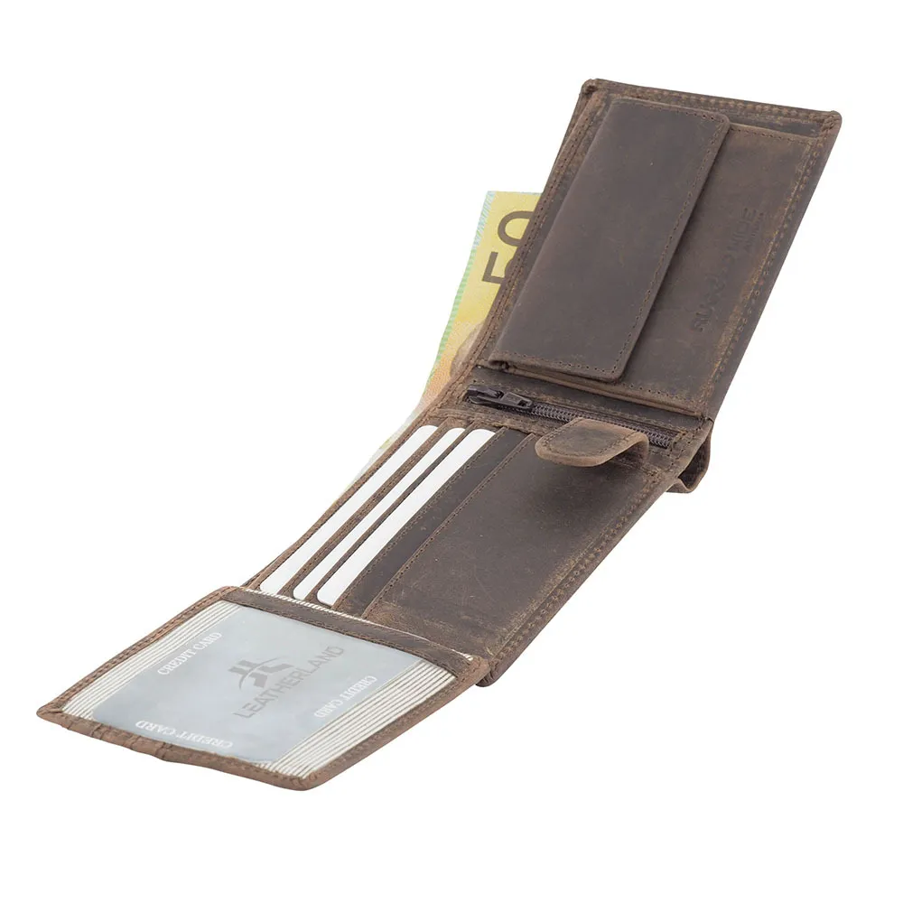 Do not travel without protection!  Our newest release genuine leather wallets offer modern functional designs with the added security of RFID Protection.  Crafted using the highest quality cowhide leather. Elegance, style and best quality are always positive traits; and that is what we provide for you at LEATHERLAND AUSTRALIA.  Natural Oils and Waxes have been used for the tanning process, to achieve a natural and vintage look.  There is a possibility that these substances could migrate out of the leather and stain your light-coloured garments since this is the special character of the Leather, please be aware of this.