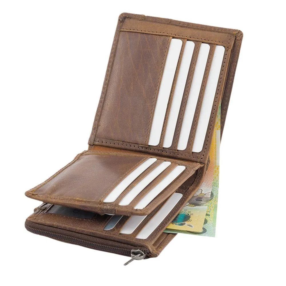 RFID Men's Genuine Rugged Hide Large Leather Wallet