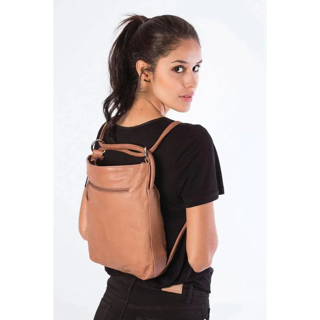The smaller version of our Indiana, the ever popular convertible leather shoulder bag and backpack in one and is destined to become a favourite. It is made from soft leather with a secure top and back zip, external mobile pocket. It's perfect for travel, weekends, and every day and available in a range of great colours.
