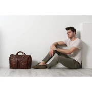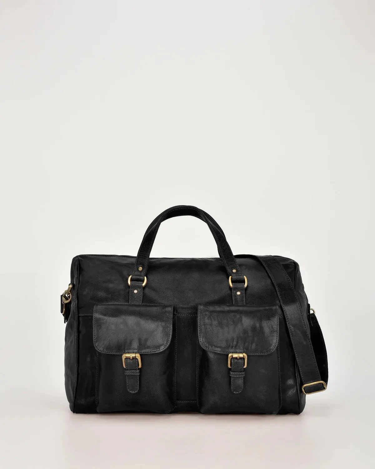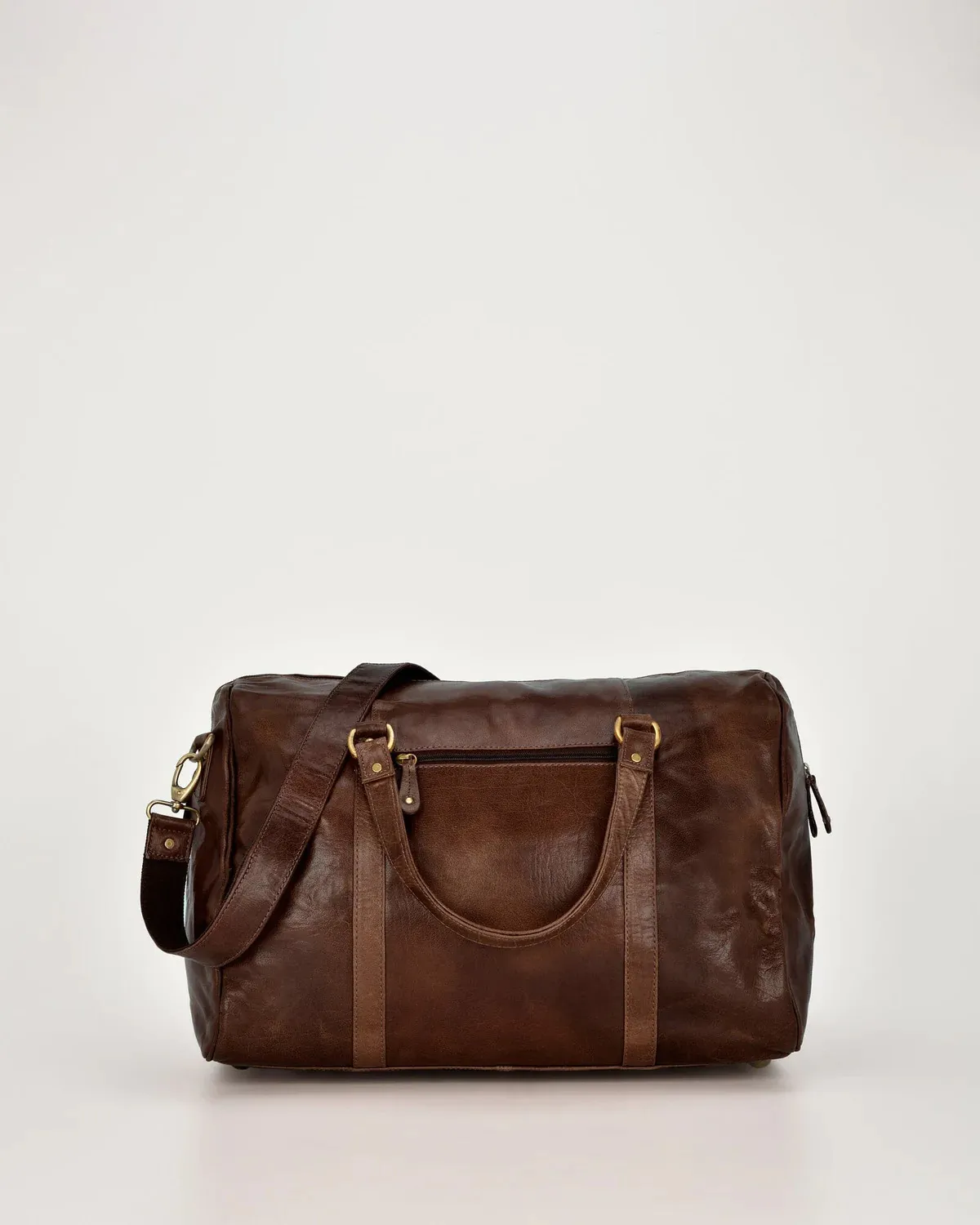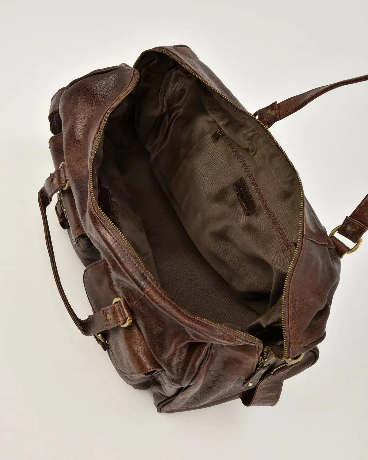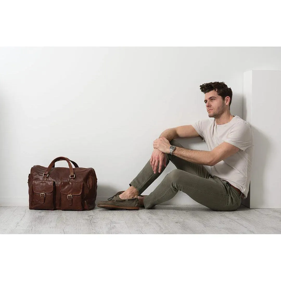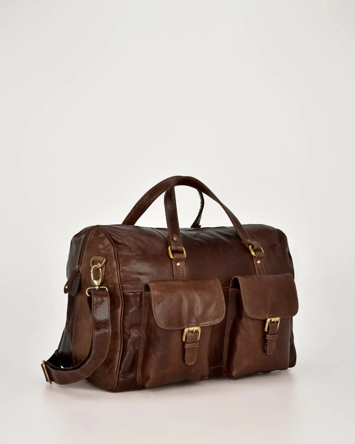 Fashioned from exquisite vegetable-tanned water buffalo leather, the Soho overnight bag serves as an ideal leather weekender, gym bag, or onboard luggage. Crafted from premium and durable leather with a rich texture, it boasts a spacious main zipped compartment for packing clothing and essentials. Additionally, it features two distinctive front buckle pockets for convenient access to items like a phone. Inside, there are open and zipped pockets, perfect for organizing phones, glasses, and travel documents. The bag is equipped with two top carry handles and a detachable, adjustable leather strap for added convenience.