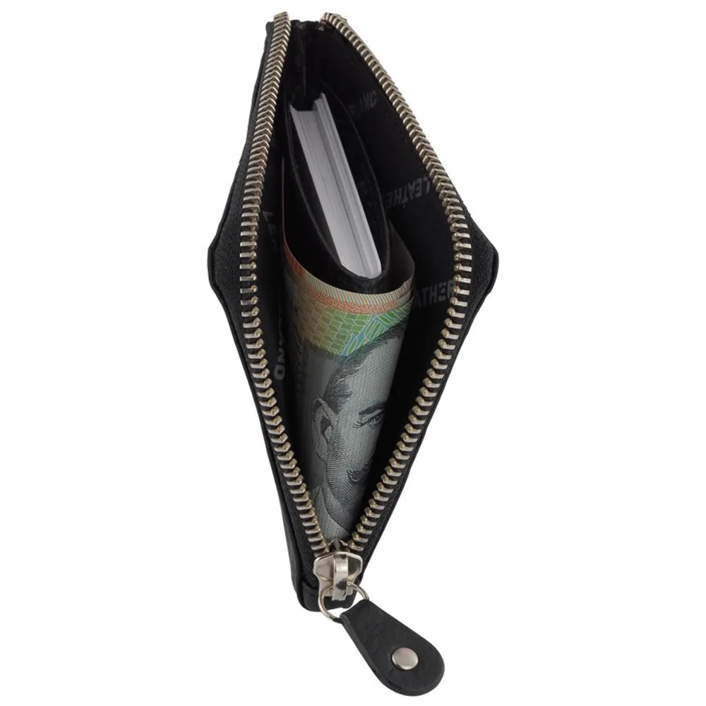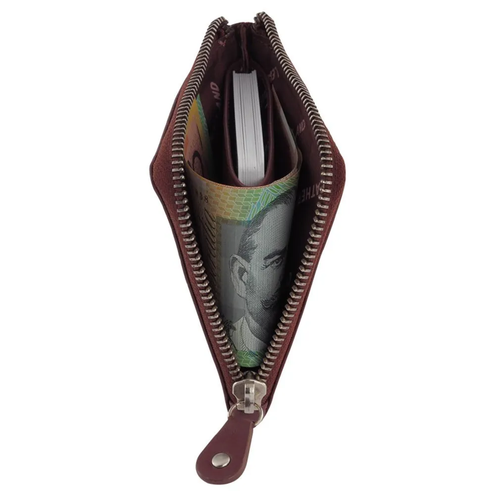 RFID Unisex Genuine Soft Leather Copact Slim Zipper Purse