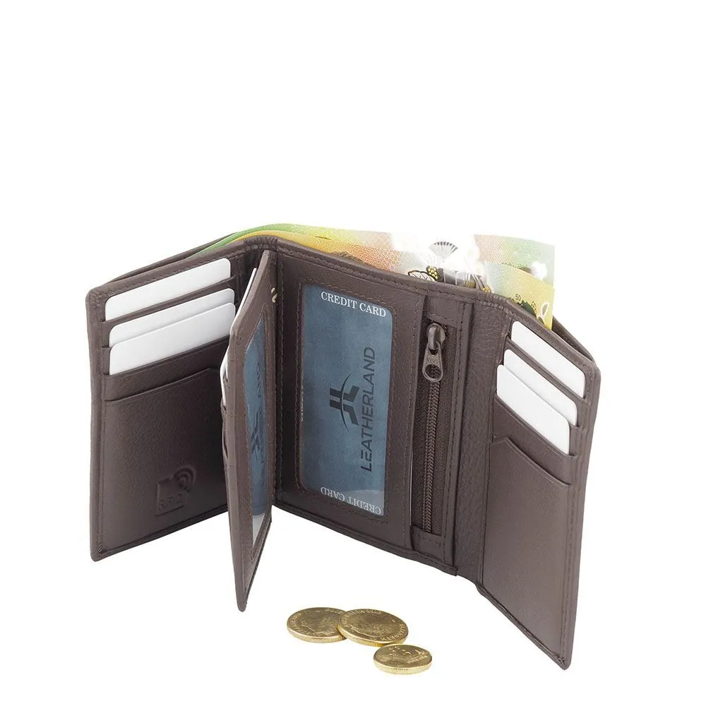 Men’s Genuine Cowhide Soft Leather RFID Tri-Fold Wallet Brown [Colour: Brown]