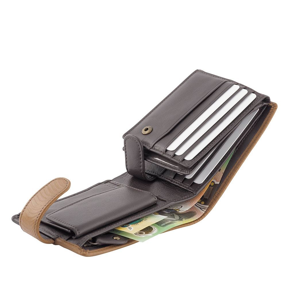 Introducing the Tumut Wax Leather Wallet, a stylish and practical accessory designed in Australia. Featuring an impressive 12 credit card slots, two ID windows, two hidden compartments, and two large note sections (one with a zippered closure), this high-quality wallet has everything you need to keep your essentials organized.