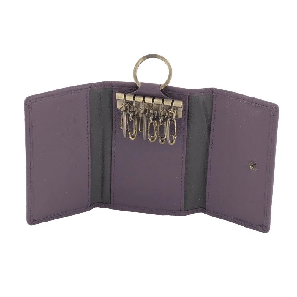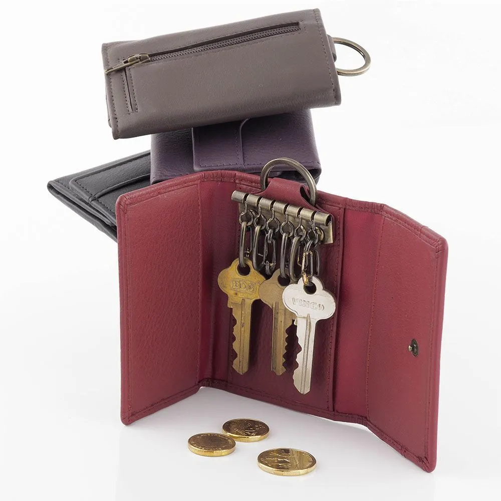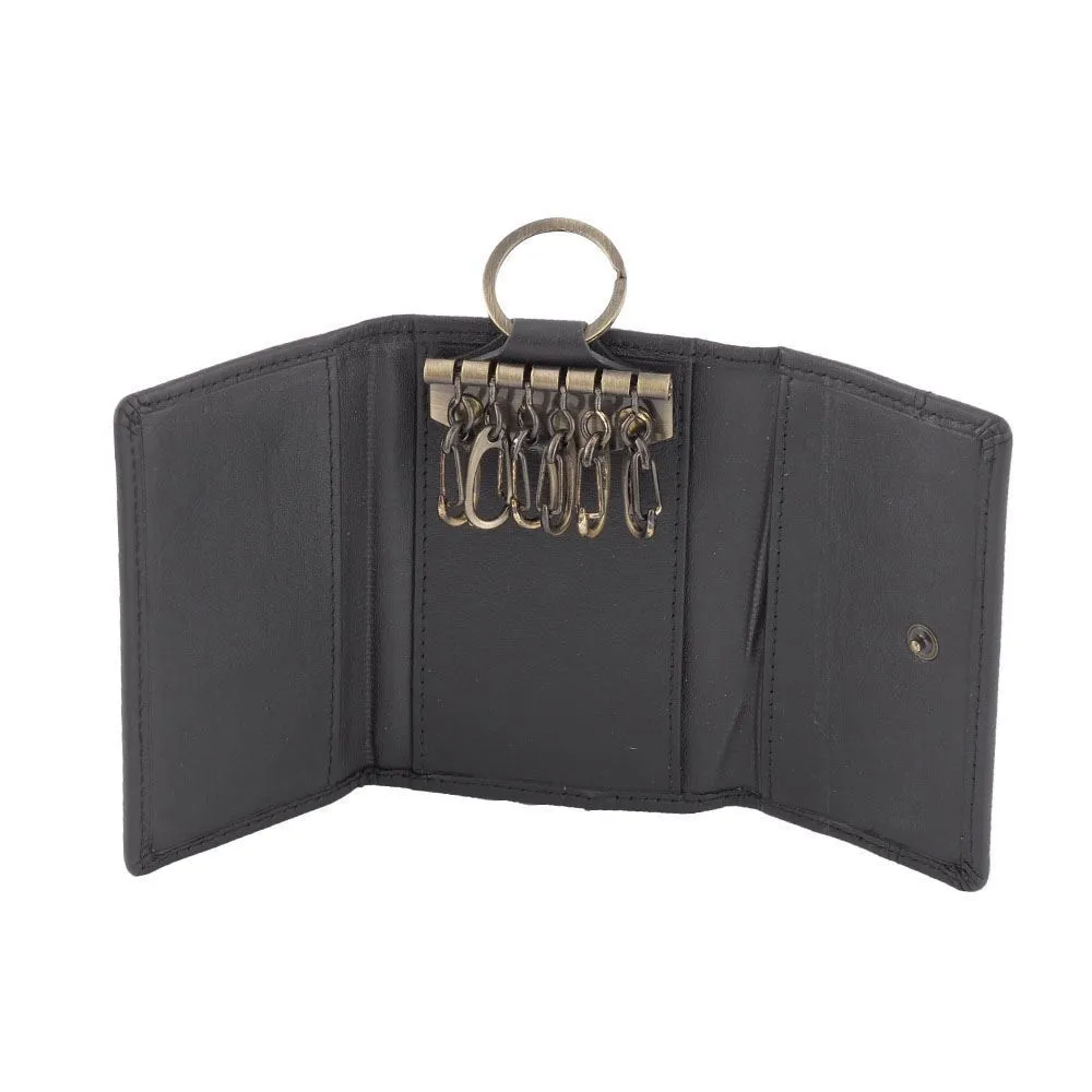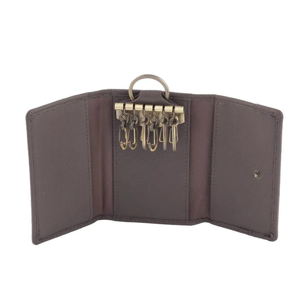 Unisex Genuine Full Grain Leather Key Holder Case 6 Keys Wallet