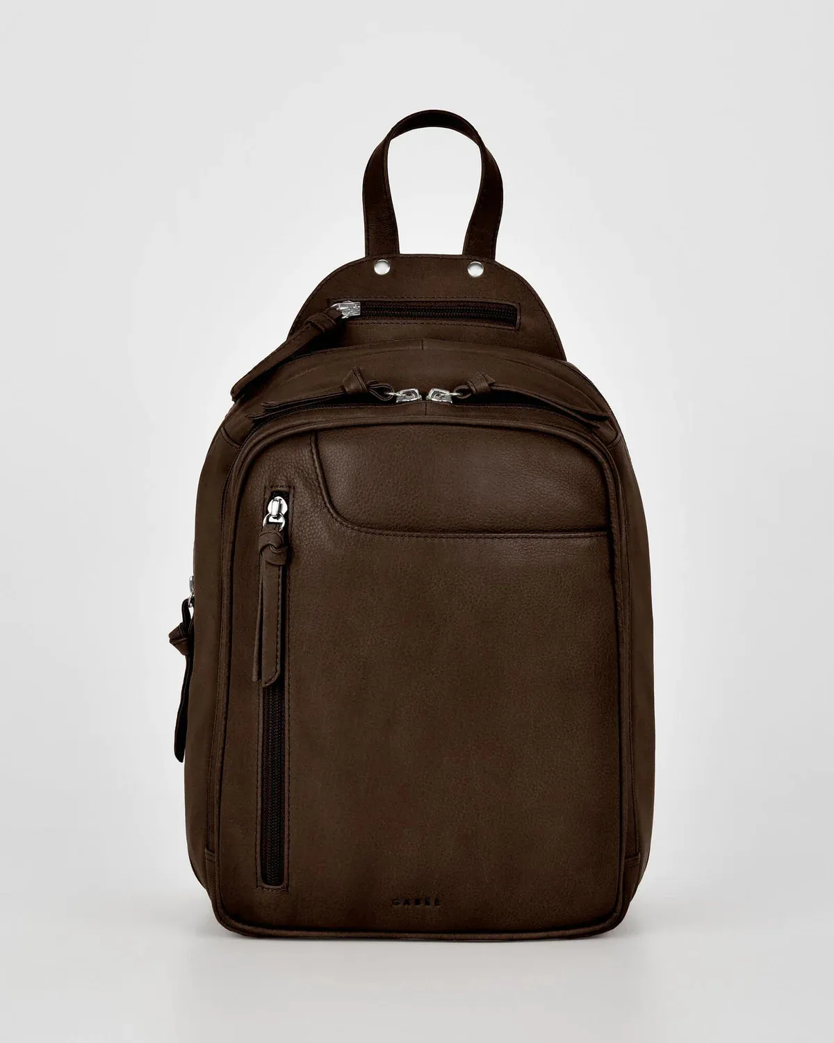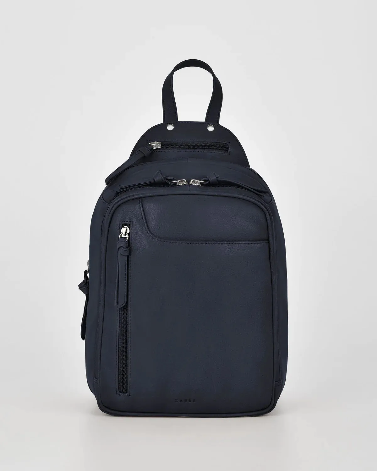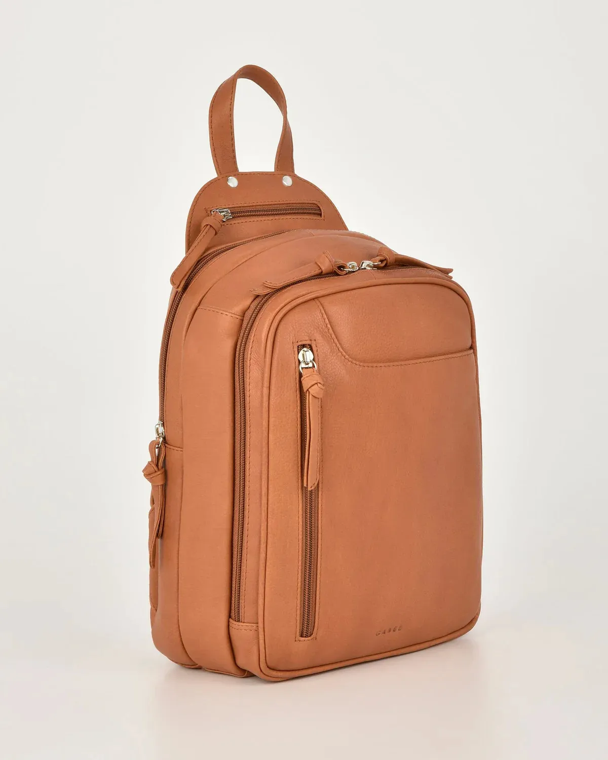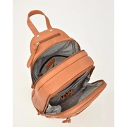 • 2nd Zip Section: 1 zip pocket, top handle and two fully adjustable leather back straps.