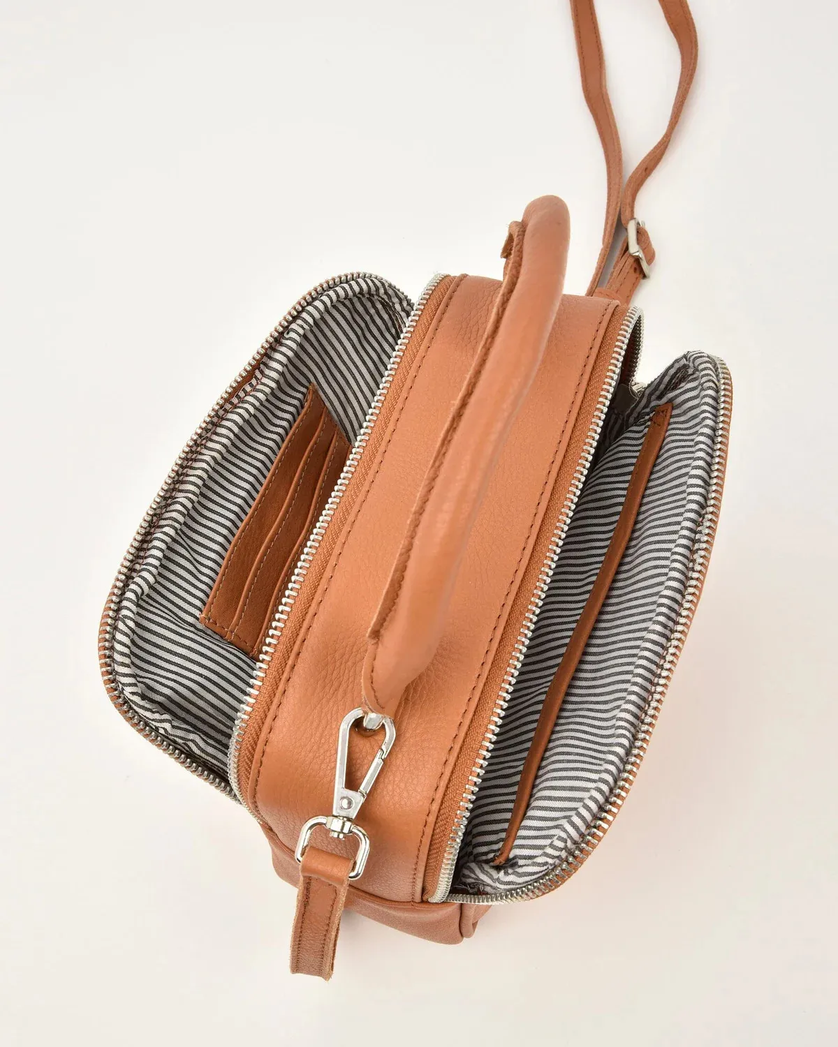 Introducing Janelle – the epitome of sophistication to enhance your everyday ensemble. Meticulously crafted from premium natural leather, this bag showcases a structured silhouette complemented by double-zipped compartments. Its top handle offers flexible styling options, whether worn crossbody or hand-carried.