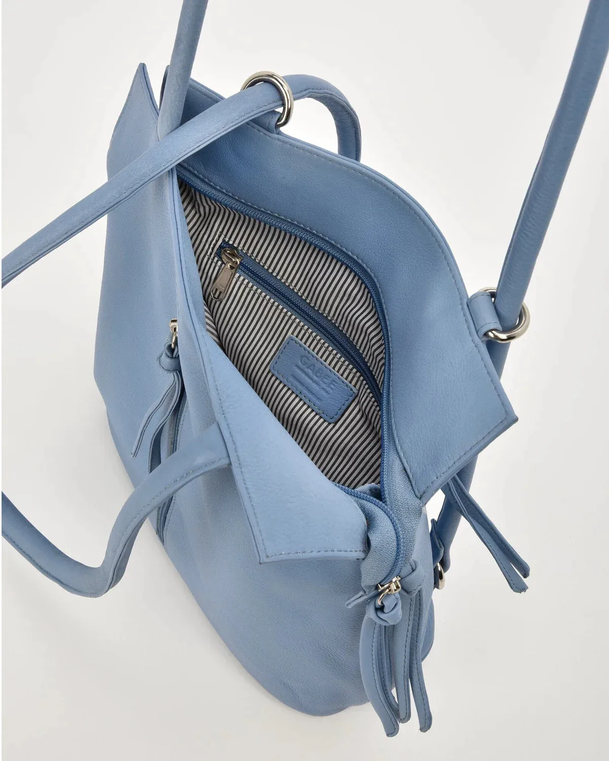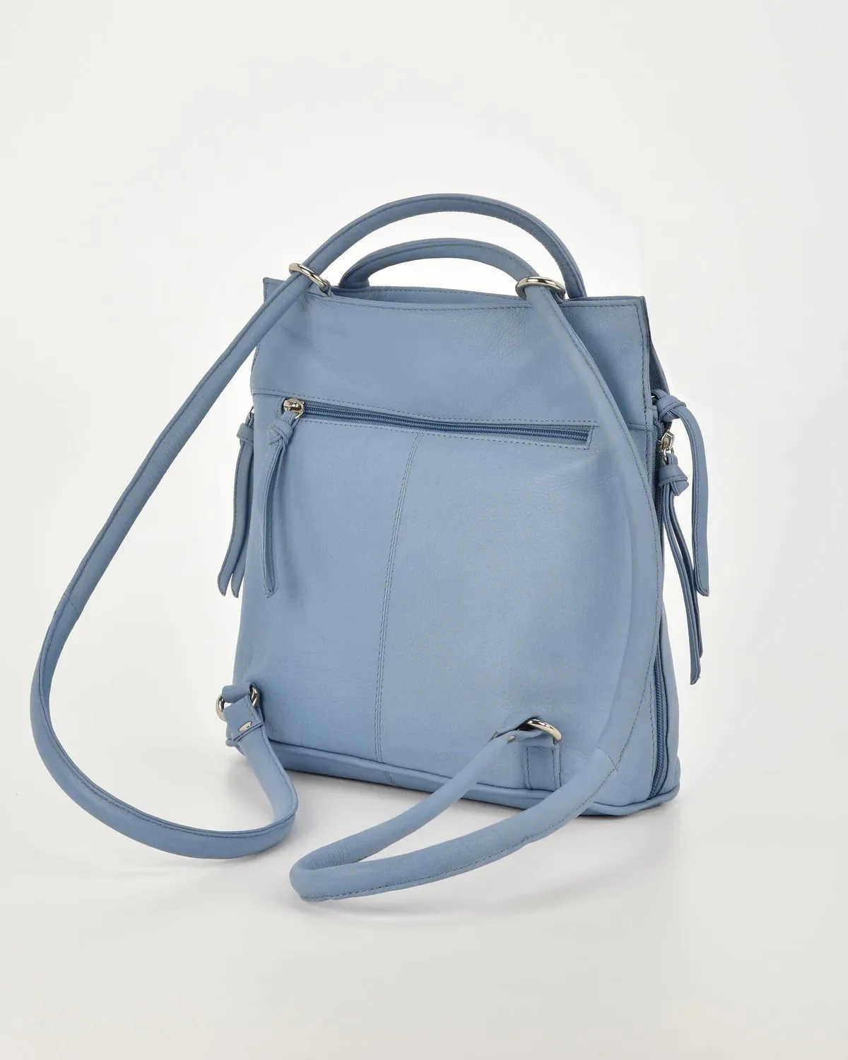 Carry it securely over your shoulders with the roomy strap length, or pull these straps through for a slimline backpack that sits flush on your back with the leather straps sitting comfortably.